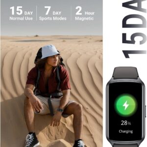 Fast Magnetic Charging, A single charge of 2 hours can provide enough power for daily use of up to 1 weeks or a standby time of approximately 15+ days.15 Day Standby, up to 2 weeks on Low Power Mode. Tracks your morning, night & everything without needing to stop for a chargePlease note: If you need to extend the battery life, please turn off the high power consumption function