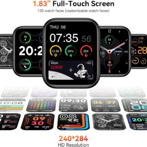 1.83 HD Screen: Fitness tracking watch with HD screen, enjoy vivid colors and sharp details on the ultra-large touchscreen, even under sunlight, with customizable watch faces